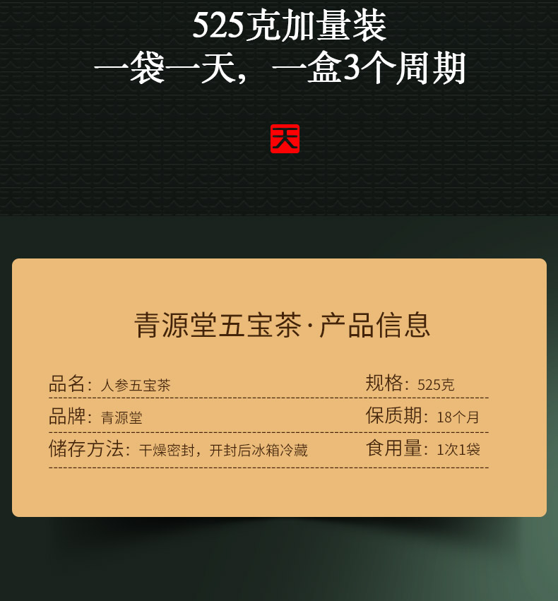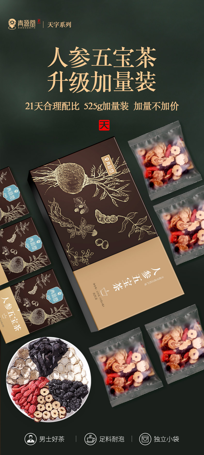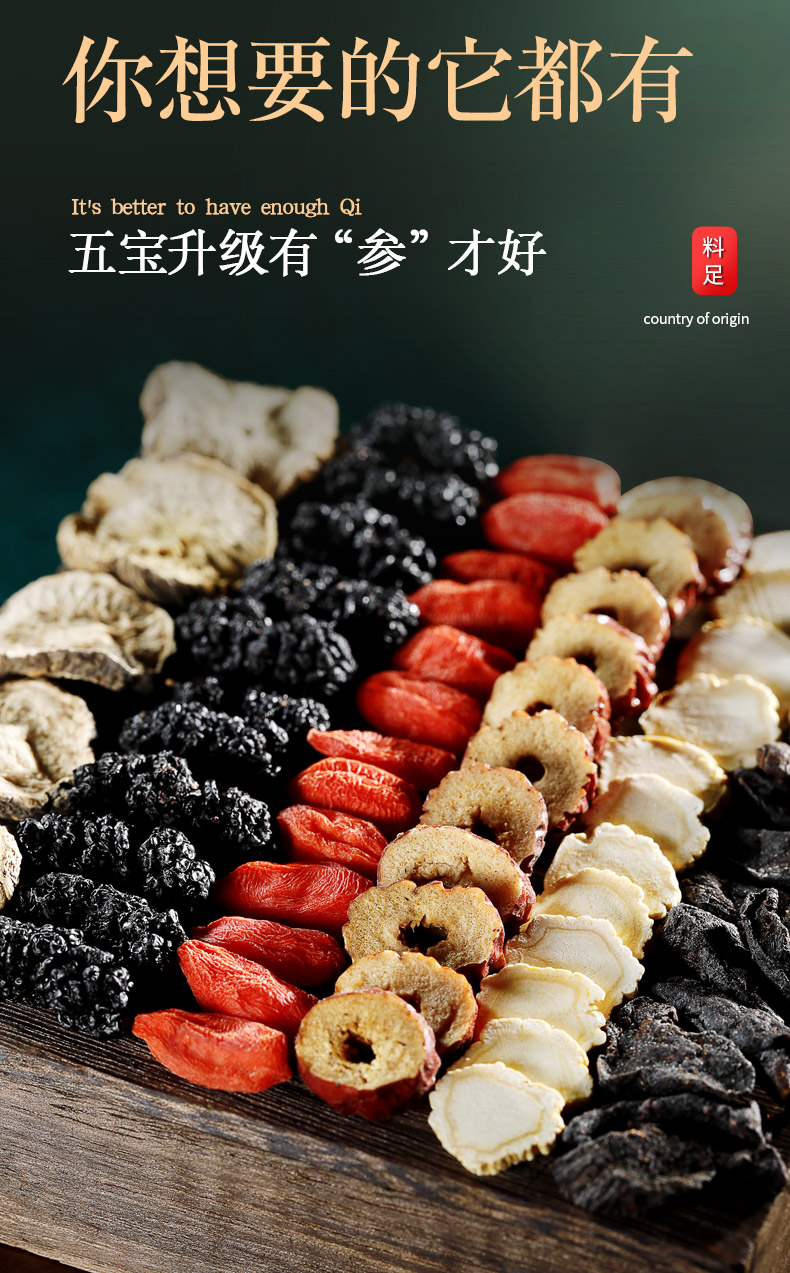 人參五寶茶525克瑪咖黑紅枸杞子補(bǔ)茶黑桑葚干